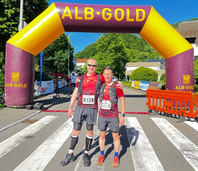 Christian Hannemann und Peter Schobert (von links) vom LG Brandenkopf absolvierten am vergangenen Samstag den Lichtenstein-Trail.