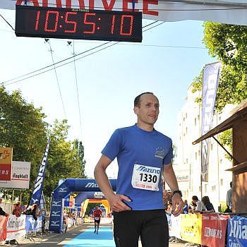 9 Uhr überquerte er nach durchlaufener Nacht überglücklich die Ziellinie.