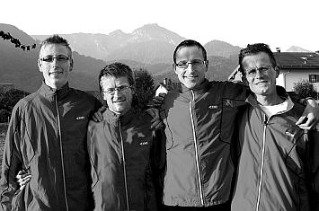 Das Berglaufteam der LG Brandenkopf mit Christian Mai, Ulrich Benz, Marco Utz und Joachim Benz mit dem Ziel, dem Jenner im Hintergund.