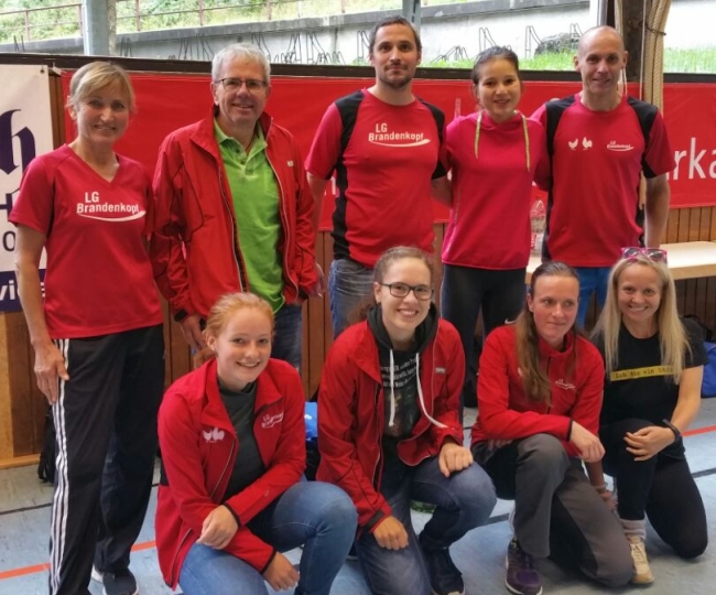 Sehr stark vertreten mit neun Läuferinnen und Läufer war die LG Brandenkopf und konnte auch kräftig bei der Medaillenvergabe absahnen. Anja Carlson, die zum ersten Mal am Belchen-Berglauf teilnahm, wurde Dritte bei den Damen und erste in der Altersklasse W35. Bei ihr wurden am Ziel am Belchengipfel 1:03:09 Stunden gemessen. Nadia Dietz, die sich immer noch nicht von ihrer Verletzung aus dem Frühjahr erholt hat wurde mit 1:04:15 Fünfte und ebenfalls Altersklassensiegerin. Franziska Schmieder lief mit 1:06:32 ebenfalls unter die ersten zehn Läuferinnen. Sie wurde Siebte im Gesamtfeld und erhielt ebenfalls Gold für den ersten AK-Platz. Laura Huber reichten 1:20:39 für die Silbermedaille und die erfahrene Claudia Falk belegte nach 1:23:12 Std. noch in den Bronze-Platz. Mit diesen erzielten Zeiten konnte das Damenteam in der Hauptklasse zusätzlich die Baden-Württembergische Meisterschaft gewinnen.