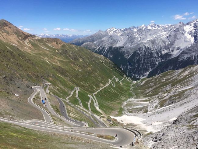 Die letzten 7 Kilometer verliefen auf der Fahrstraße mit den bekannten Serpentinen des Stilfserjochs.