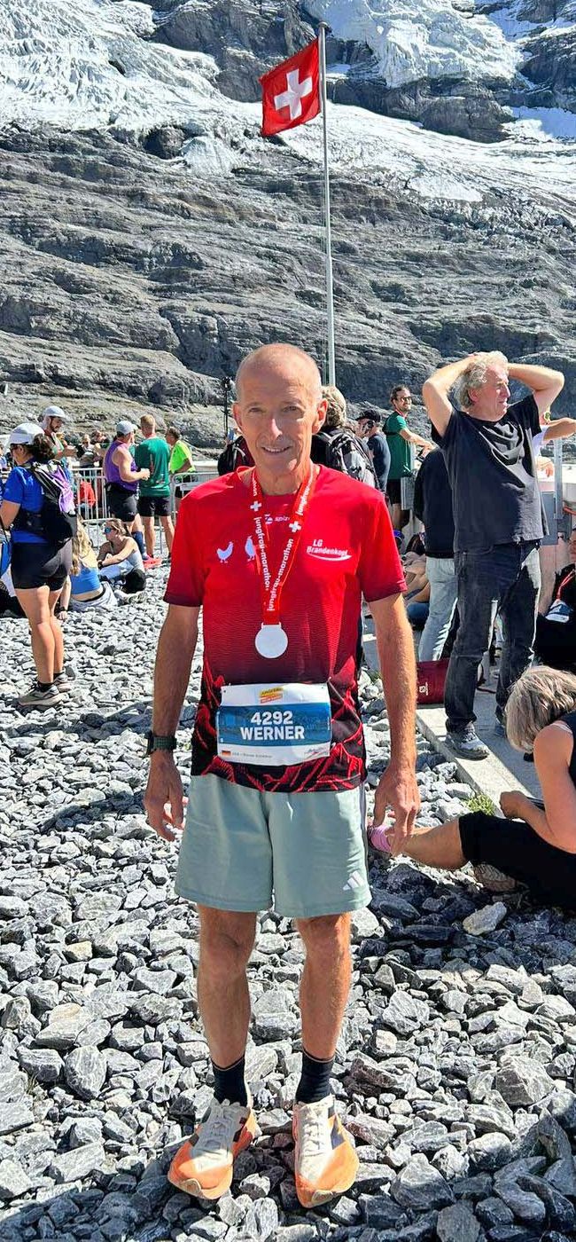 Beim Jungfrau-Marathon überzeugte Werner Schwörer von der LG Brandenkopf mit einem starken fünften Platz in seiner Altersgruppe.