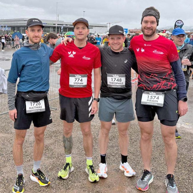 Vor dem Start (von links): Matthias Kienzle, Stefan Kienzle, Théophile Haas und Pirmin Kienzle gingen beim Freiburg-Marathon auf die Strecke.